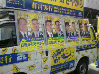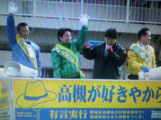 写真は「イエローハット・サポーターズ・ブログ」( http://supporters.yellow-hat.jp/ )より。イエローハットプロジェクトチームの「旗」はシンプルです。「政治家や市役所のためではなく、市民のための新しい高槻市政をつくります。」。より多くの同志政治家、同志市民のみなさんがこの旗のもとに集っていただくことを祈るような気持ちで望んでいます。