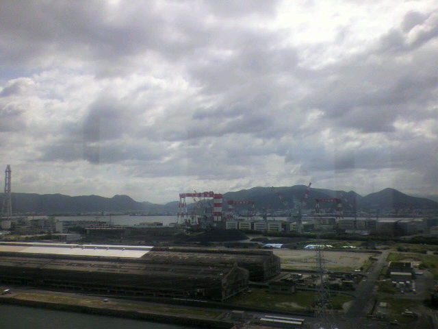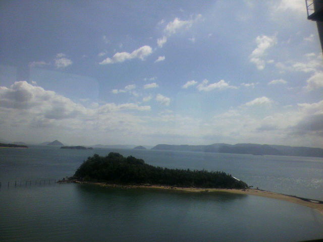 そこで今回は、車両左側の普通車自由席に腰掛けました。瀬戸大橋からの視界が大いに開けます。3枚目の写真は橋を渡り切ったところにある坂出のまちです。