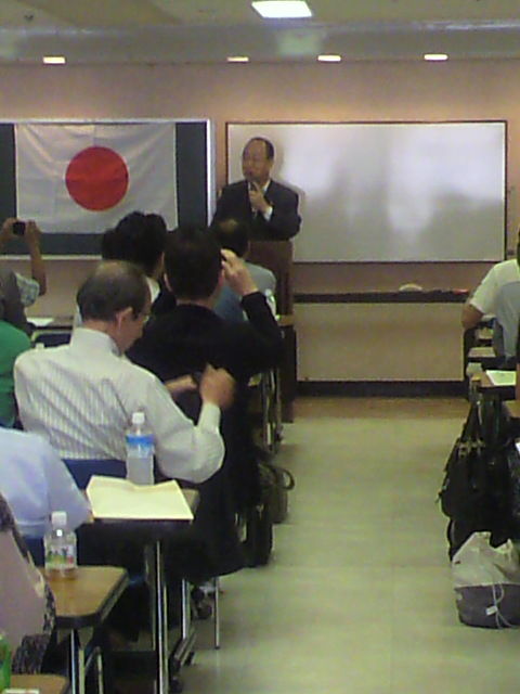 お話は、増税論について、野田外交、東京電力の今後の経営、衆議院解散総選挙、道州制・大阪都構想、みんなの党と大阪維新の会との連携の大義、東京一極集中の弊害、(自らの)参議院選挙出馬の動機・エピソードと多岐にわたり、また、大阪人らしく藤山寛美ばりのおとぼけジョーク連発で聴講者を飽きさせないものでした。