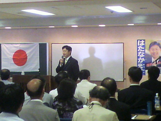 はたなか光成さん( http://hatanaka.cdx.jp/ )の近況報告と所信表明。政治情勢分析、さらに、今後の展望は、いつもどおり大局に立っていて、はたなかさんらしくとても良かったと思います。松下幸之助のめざした政治がここに受け継がれていると思います。