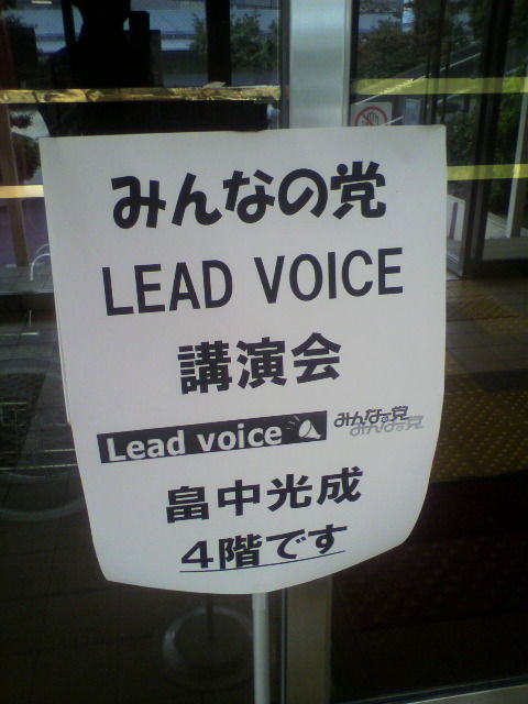 はたなかさんはみんなの党公認で次期衆議院議員選挙へ出馬を予定しています(兵庫県第7選挙区(西宮市、芦屋市)。「LEAD VOICE 勉強会・講演会」はみんなの党公認候補者となる前から続けてこられたもので今回はその第9回目となります。