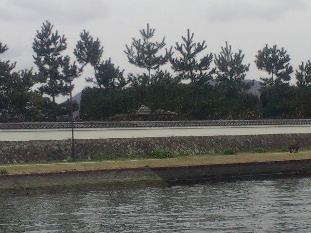 橋本川右岸にある全長300m超の白壁も名所のひとつです。