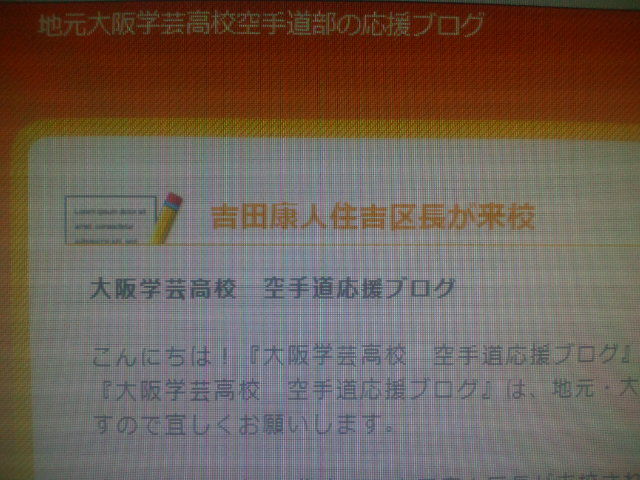 実は、このシリーズの最後のログで、「地元大阪学芸高校空手道部の応援ブログ」( http://krtd.exblog.jp/18806127/ )が訪問直後に素早く報じてくださったことをご紹介しようと思っていたんです。でも、お仕事が忙しくて間がちょっと空いてしまいました。そしたら、その「応援ブログ」のご紹介の前に「やすとログ」のことをまた素早く取り上げてくださっていました( http://krtd.exblog.jp/18926667/ )。ビックリ!。