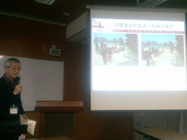 その一環として、昨年12月8日(土)、「いのちを守る都市づくり 地域防災ワークショップ2012 ~みんなで備える広域複合災害~」( http://odrp.life.osaka-cu.ac.jp/event/pdf/2012_12_08.pdf )が開催されました。吉田康人は住吉区長として、大阪市立我孫子南中学校で行われた第2部と第3部とに参加しました。