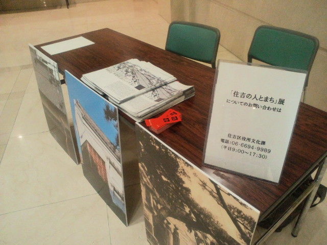 今日から10月16日(水)まで「住吉の人とまち」展を大阪市役所玄関ホールで開催します。主催は住吉区役所。協力を住吉文化事業実行委員会からいただきました。詳細は住吉区ホームページをご覧ください( http://www.city.osaka.lg.jp/sumiyoshi/page/0000237307.html )。
