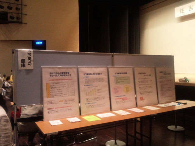 10月5日(土)午後、「平成25年度 住吉区健康まつり」( http://www.city.osaka.lg.jp/sumiyoshi/page/0000234117.html )を開催しました。住吉区民センター大・小ホールで。