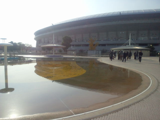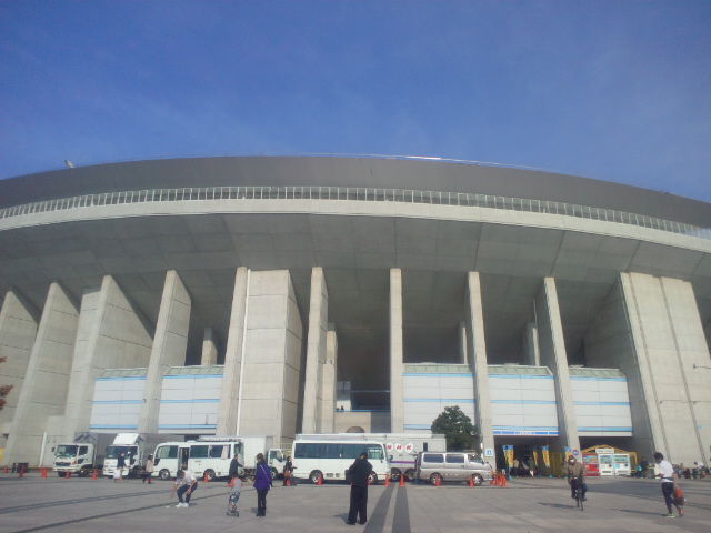 関西国際空港からのバスが長居公園内の長居陸上競技場に到着しました。