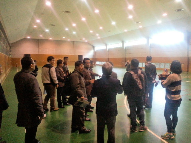 11月23日(土)、大韓民国京畿道烏山市からの視察団に経済戦略局と住吉区役所とが対応しました。建設局、子ども青少年局にもご協力いただきました。この視察団は、同国国会議員のアン・ミンソク(安民錫)さんを初めとする19名で組織され、大阪市のスポーツ施設と地域スポーツとの関係性、連携などをその視察対象とするものでした。受け入れ要請は住吉区内の学校法人白頭学院(建国幼稚園・小・中・高等学校)からいただきました。