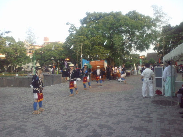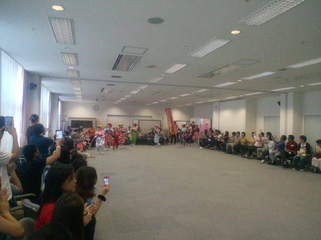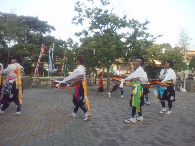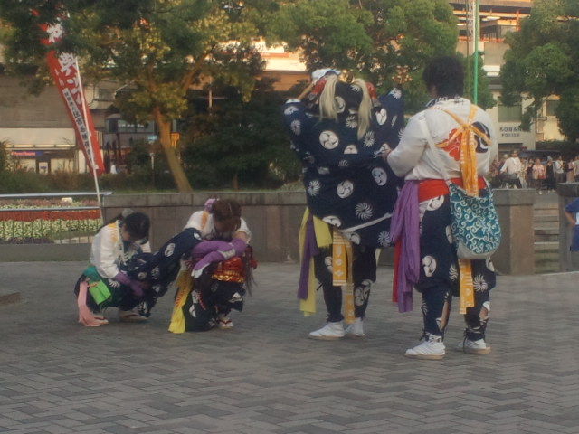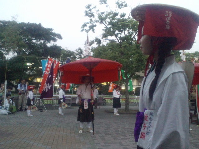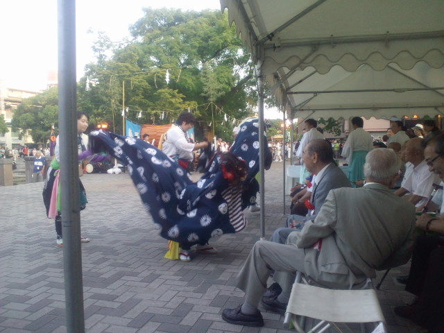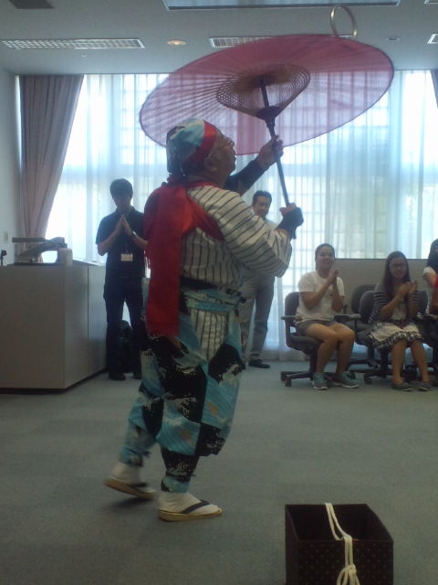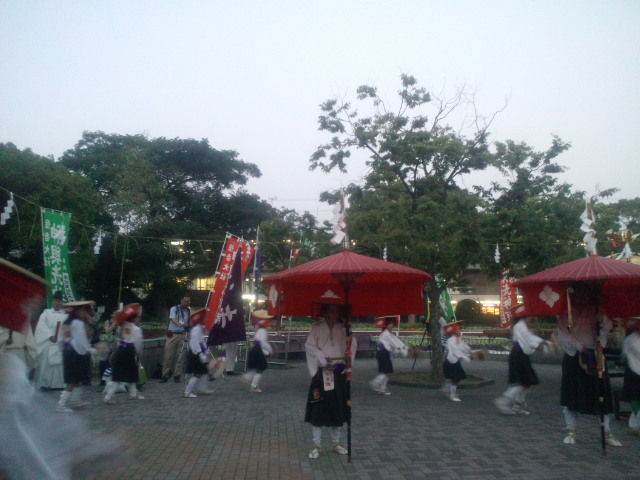 吉田康人は中座して次の行事へ向かいました。研修生の一部とは盆踊りの会場(2箇所)で後刻再開しました。楽しそうに踊っていました。