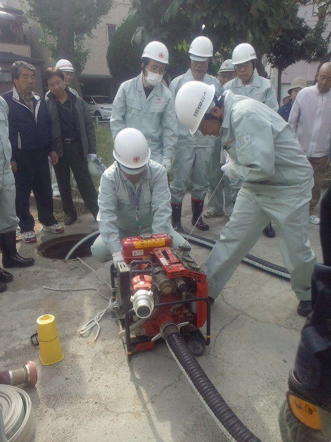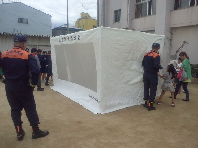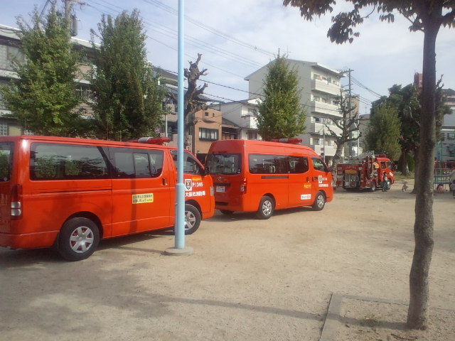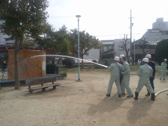 一昨日、11月8日(土)は清水丘地域活動協議会( http://www.city.osaka.lg.jp/sumiyoshi/page/0000202818.html )が防災訓練。遠沢公園で。