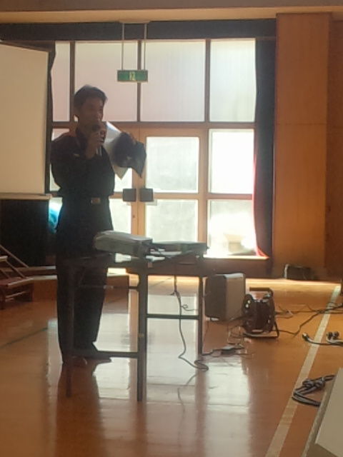 大阪市立山之内小学校の体育館でオリエンテーション。