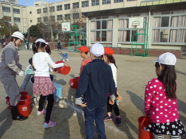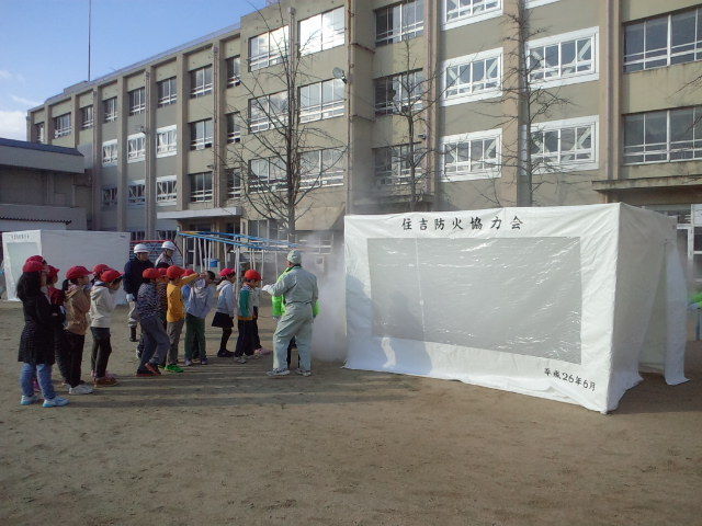 住吉連合地域活動協議会( http://www.city.osaka.lg.jp/sumiyoshi/page/0000213910.html )のご協力のもと防災訓練をテーマに取り上げていただきました。20年前の阪神・淡路大震災の教訓についての講話が校長先生からありました。
