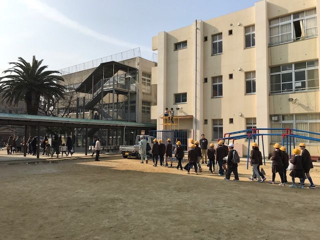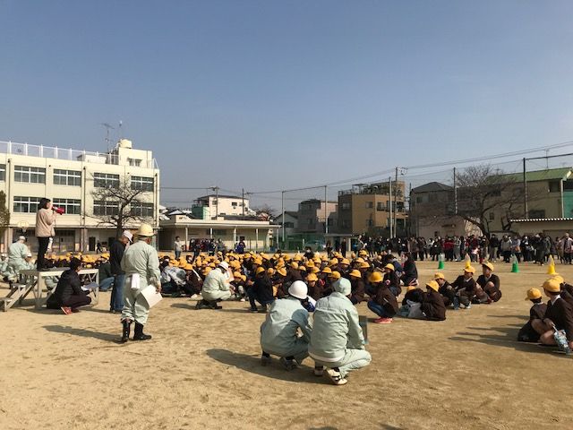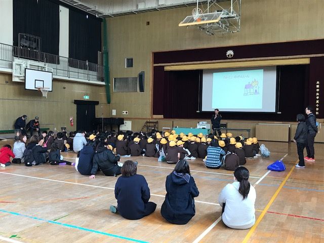 1月20日(土)は大阪市立平尾小学校での防災訓練。同小の土曜授業の位置付けで児童らが参加してくれました。