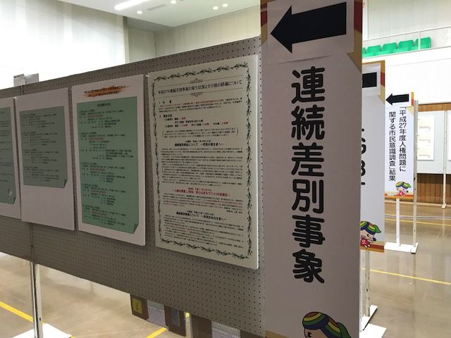 いくつかの展示にその例が見られますが、区役所行政の役割として、身近で起こった地域事案、あるいは、行政サービス、コミュニティ、学校など身近な課題から人権問題を説いていく姿勢が必要と考えています。