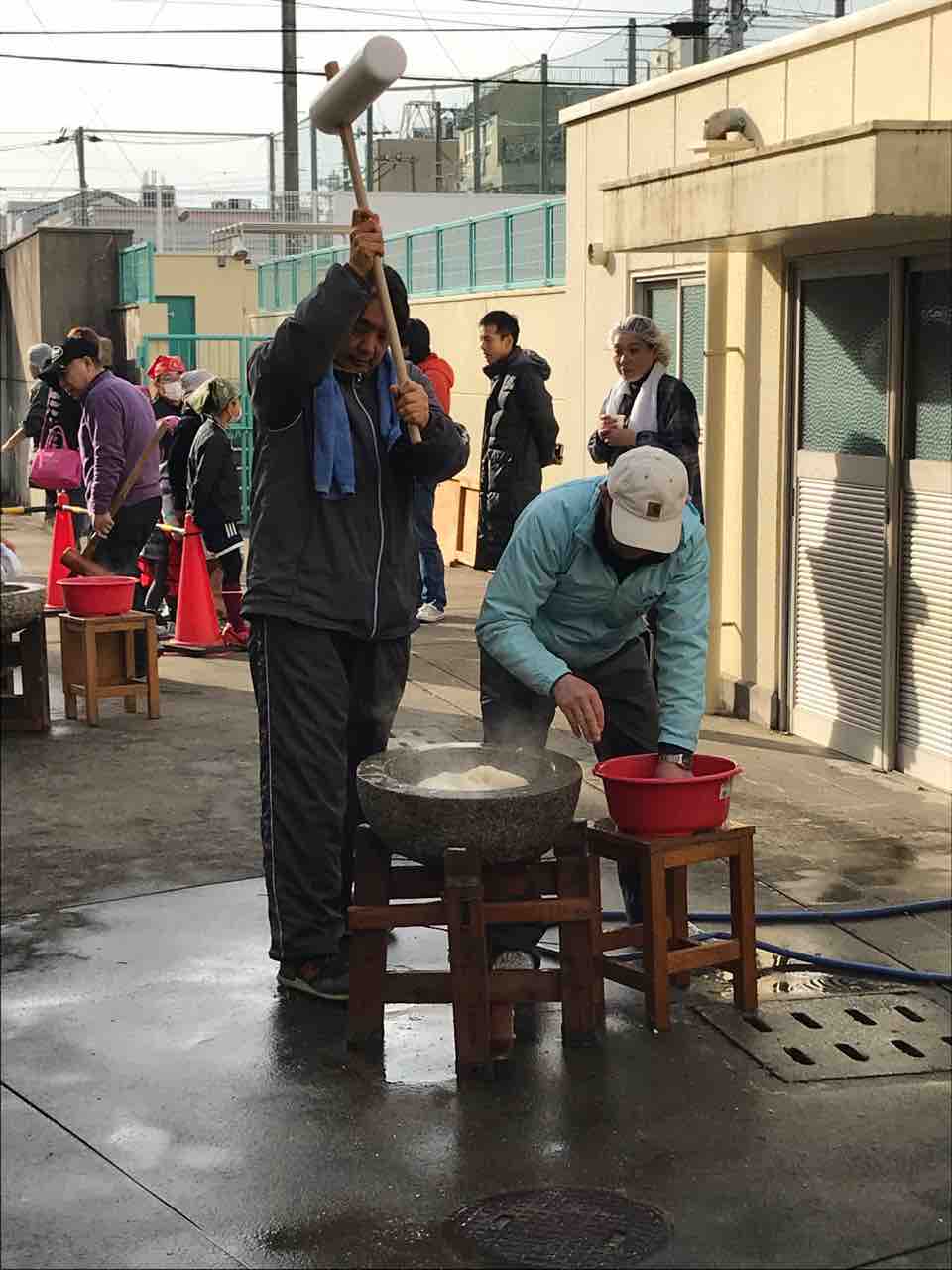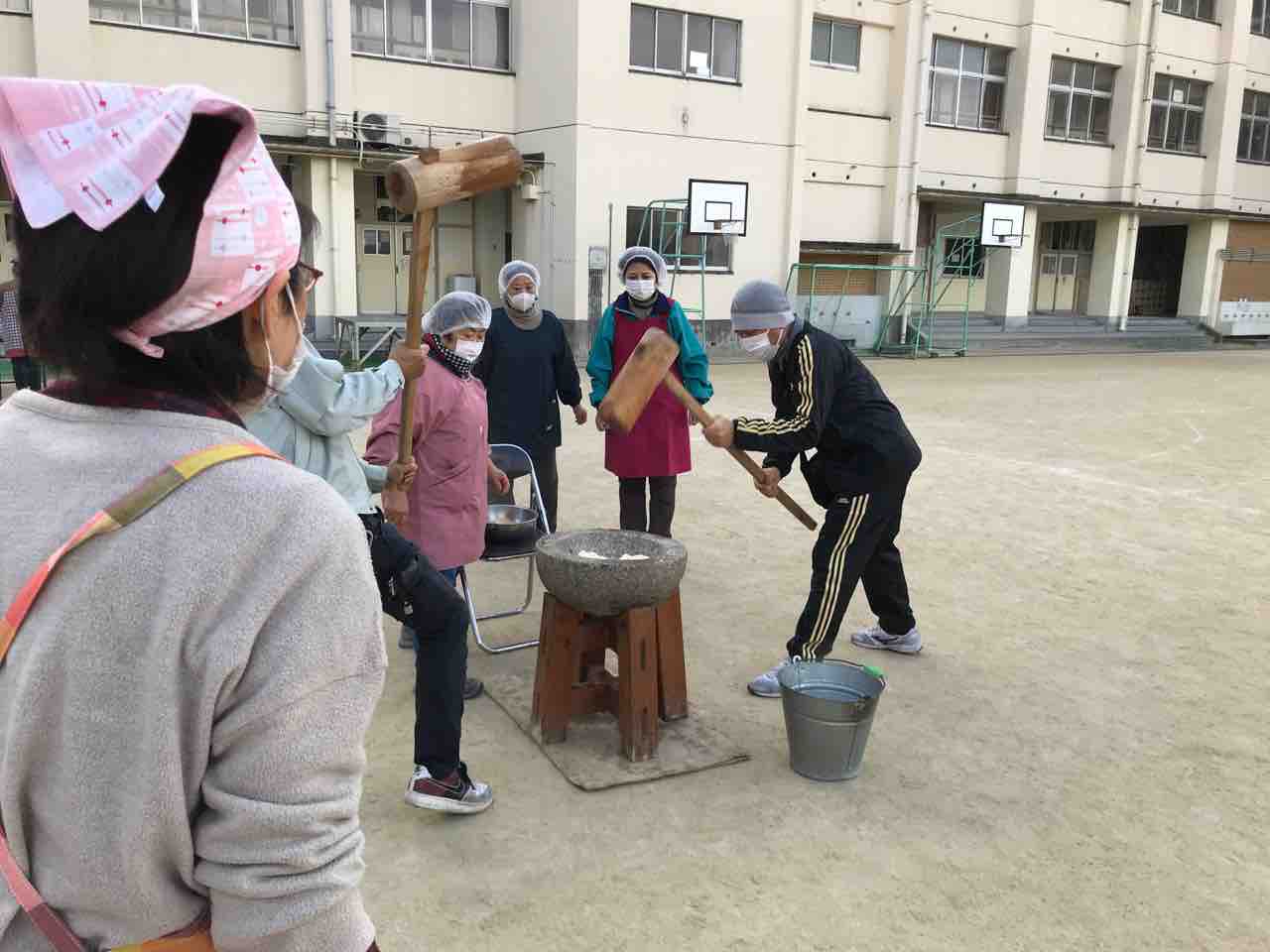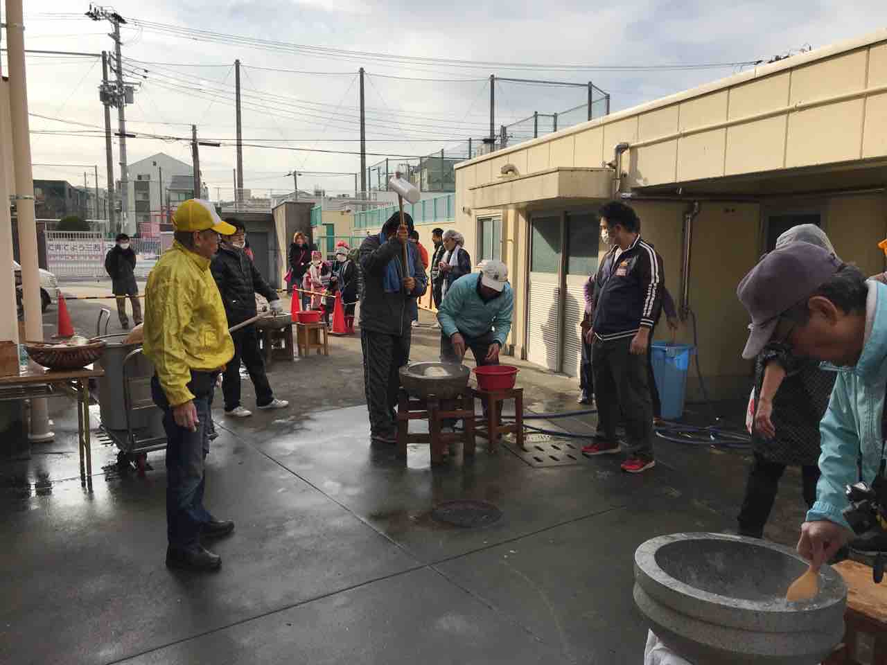 12月9日(日)は泉尾東地域でもお餅つきがありました。大阪市立泉尾東小学校で。昨年の模様は2017年12月5日付「やすとログ」(