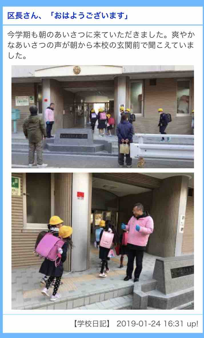 今週は、大阪市立泉尾東小学校の朝の校門にも立ちました。同校ホームページ(