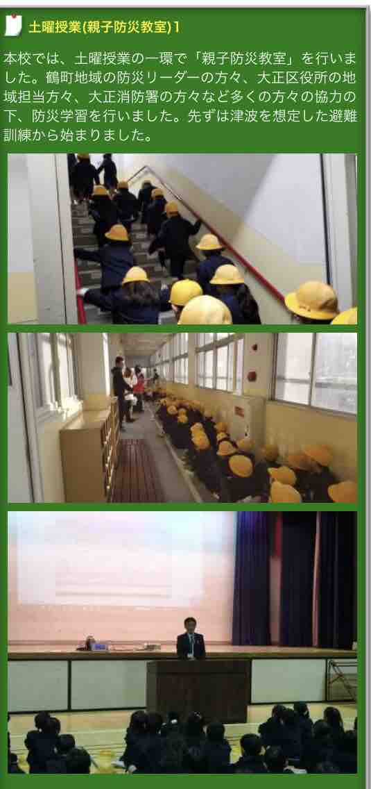まずは連休明けの火曜日、大阪市立大正東中学校。同校のホームページ(