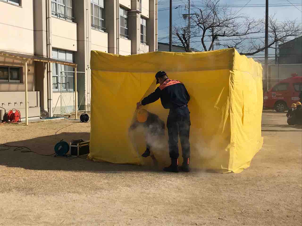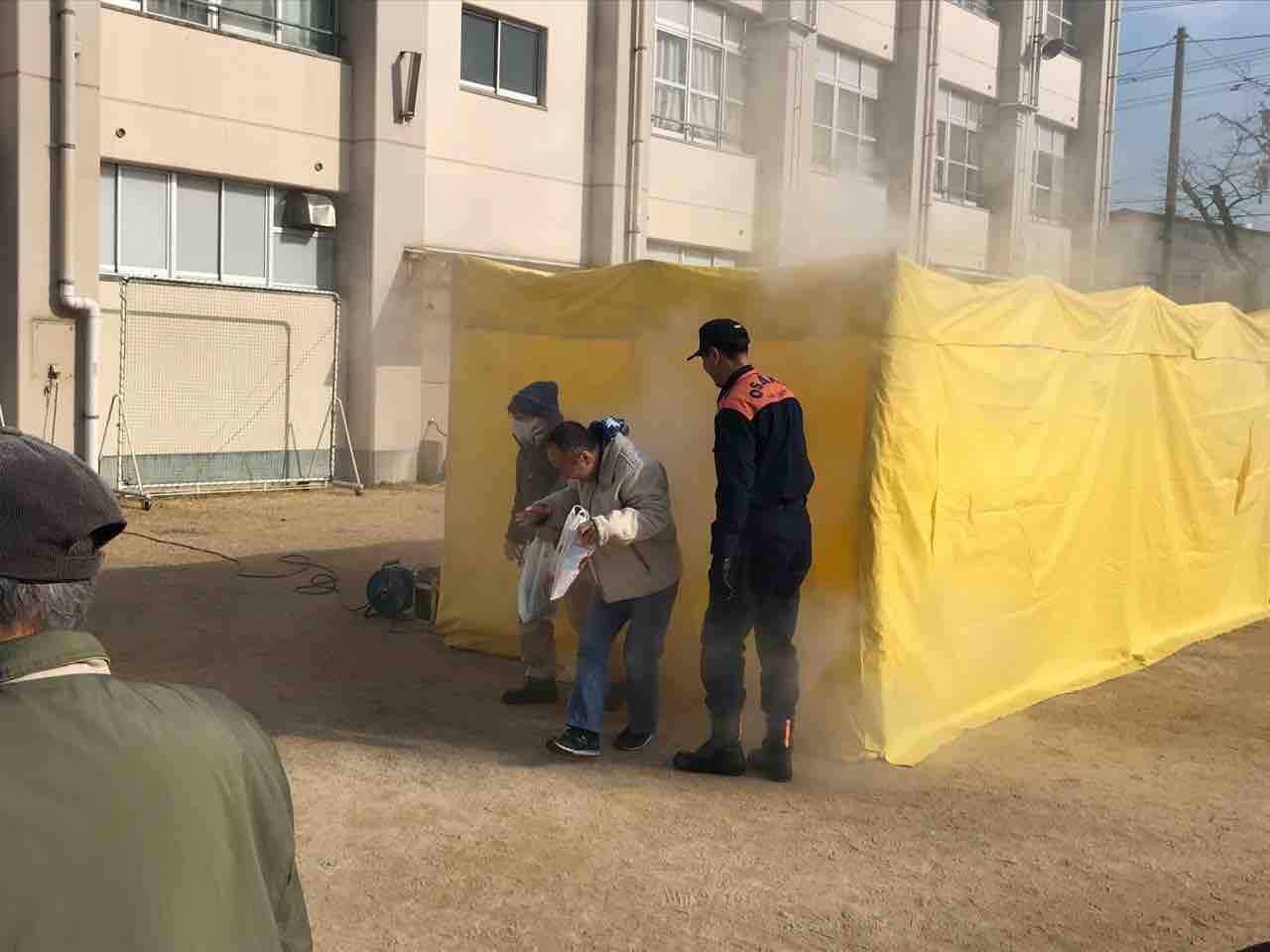 土曜日の昨日、鶴町地域の防災訓練が行われました。大阪市立鶴町小学校の土曜授業と同時連携で。