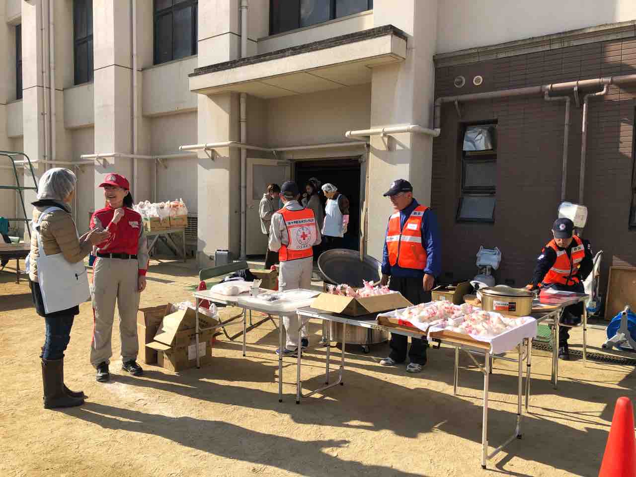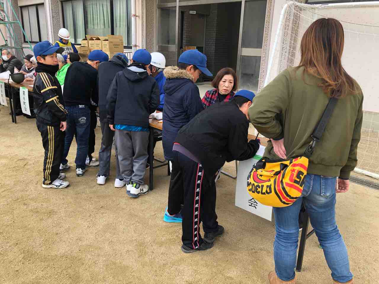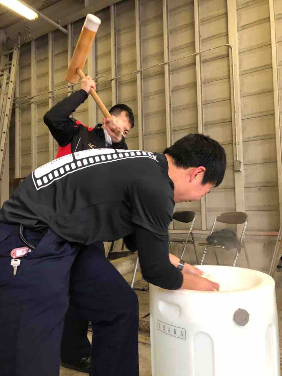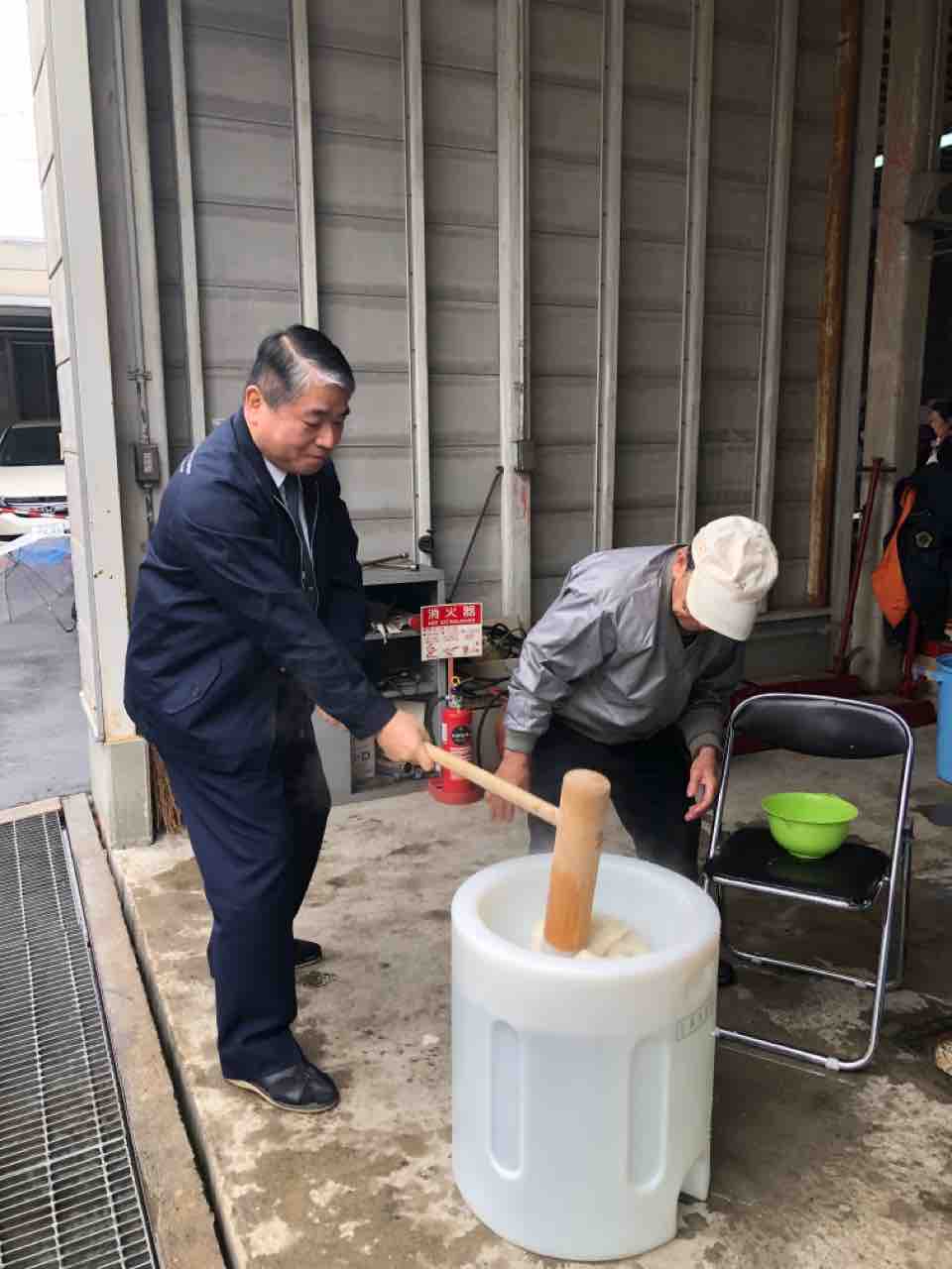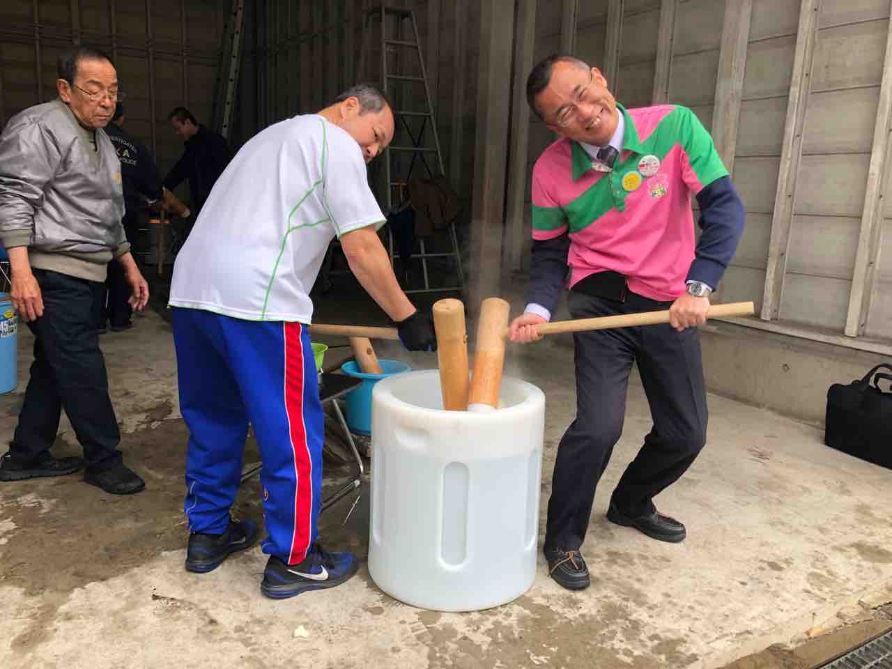 12月8日(日)、防災訓練の泉尾北小学校を出て大阪市立中泉尾小学校校庭へ。中泉尾地域の「もちつき大会」に遅れて参加。お餅も少し、食べた分くらいは(笑)、つかせていただきました。