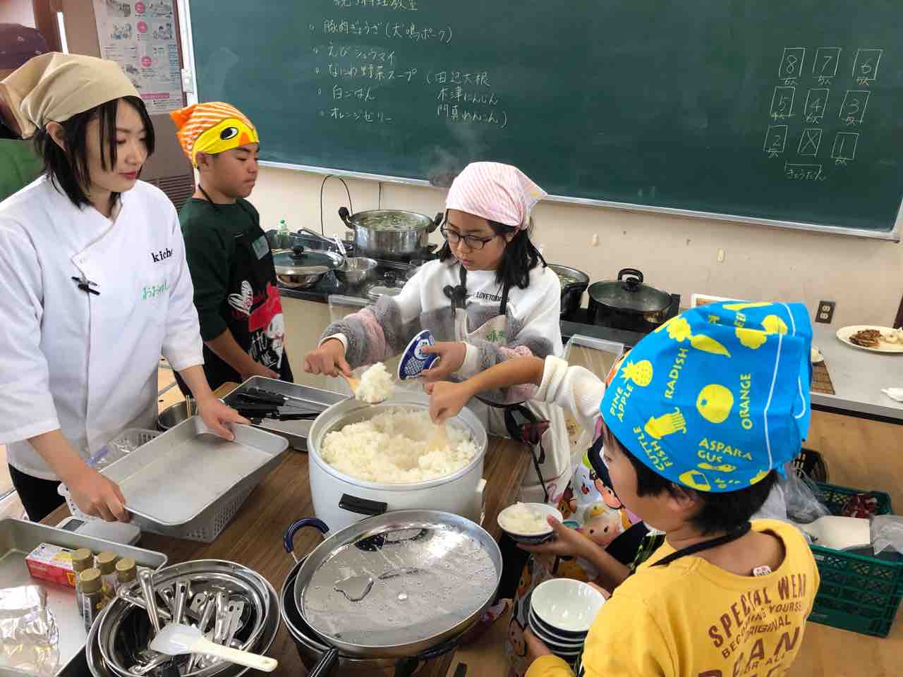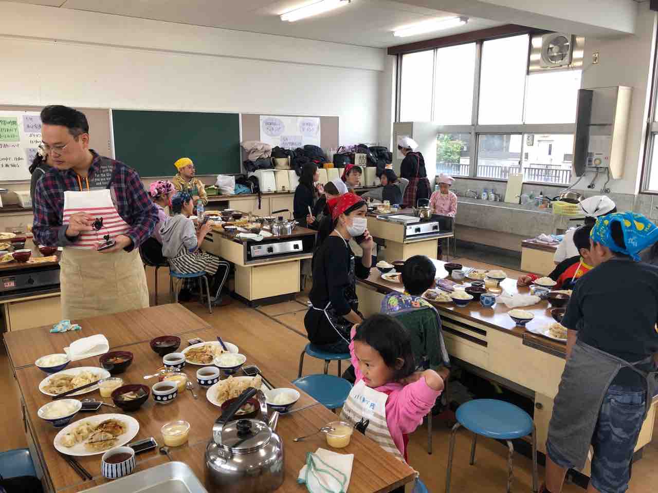 有限会社貴重( http://www2.bbweb-arena.com/kicho/index.html )の指導、同校PTAが中心になっての教室。同社代表者のごちそうプロデューサー・広里貴子さんは同小の卒業生。もう7年もこの教室を続けてくださっています。