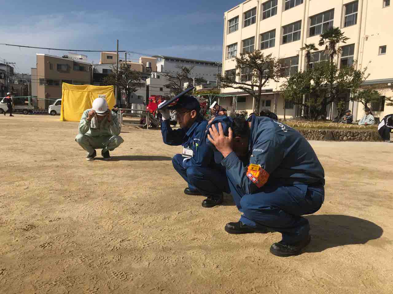 12月8日(日)、泉尾北地域の防災訓練を訪問。ご挨拶も。