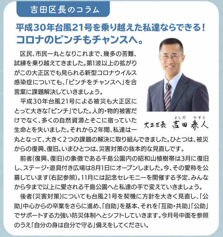 #大正区 #Taisho #おたがいさま #地域福祉 #地域防災 #innovation(イノベーション) #serendipity(セレンディピティ) #大正区長 #吉田康人 #ZUMA(ズーマ) #HoneyGOLD(ハニーゴールド) #TUGBOAT_TAISHO(タグボート大正) #昭和山 #フジバカマ #アサギマダラ #住民投票 #WELOVE大正区