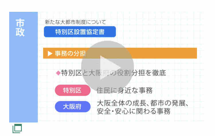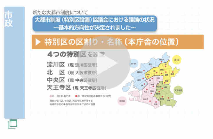 「特別区設置協定書」、3分29秒の動画です( https://www.city.osaka.lg.jp/fukushutosuishin/page/0000488688.html#20200803 )。