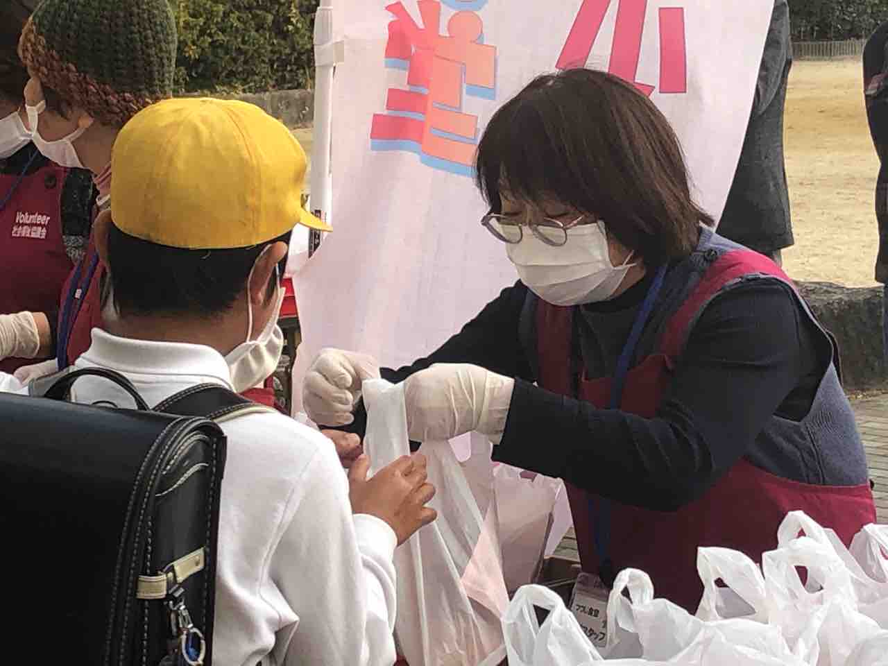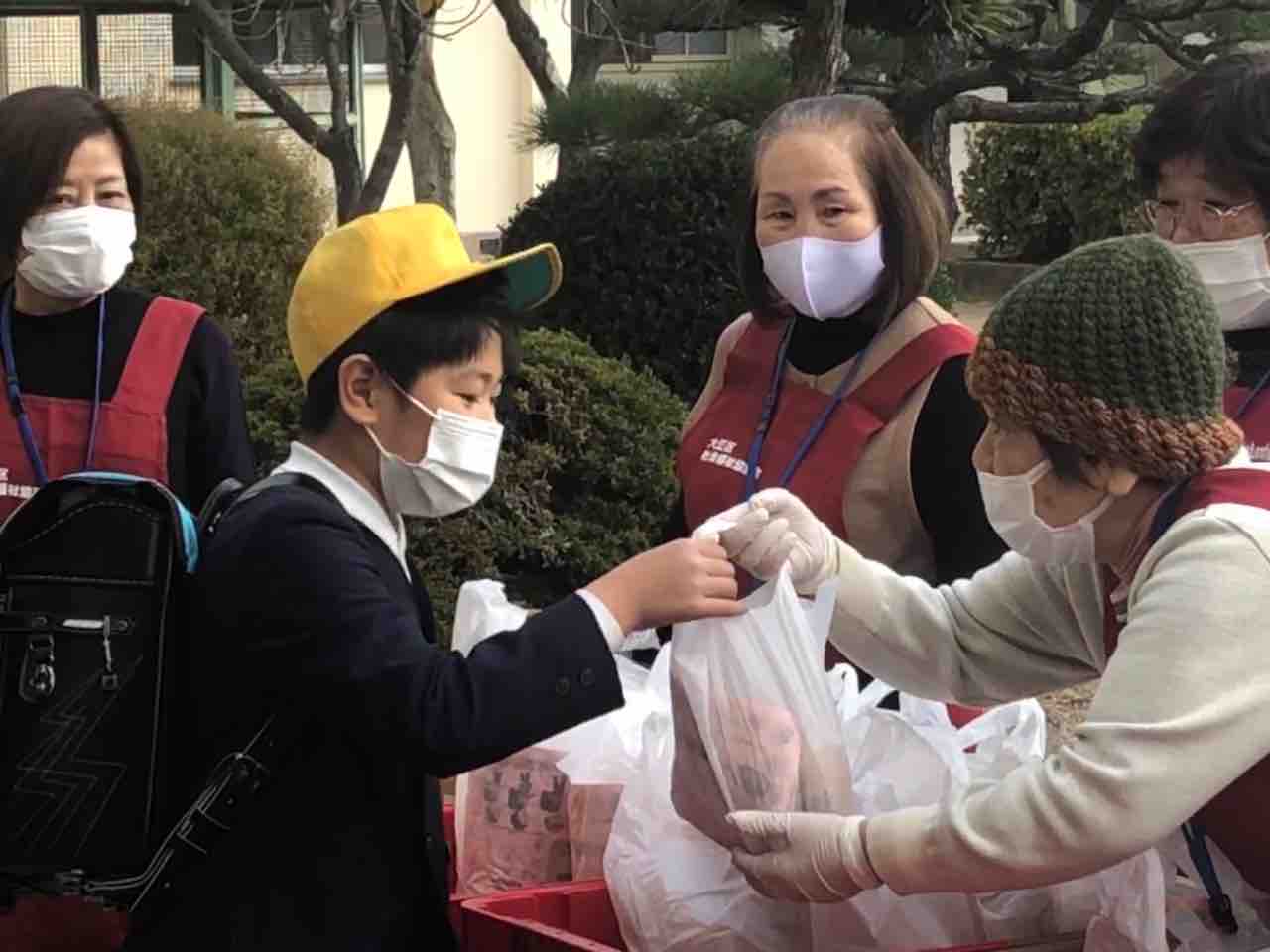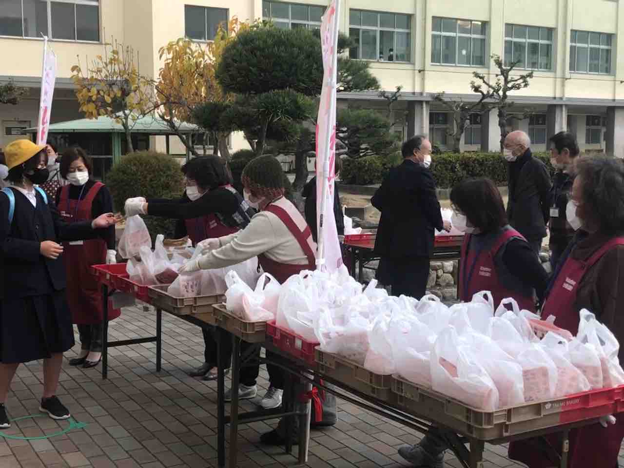 志を一にしている同クラブがご提案くださったのがいわゆる「こども食堂」の大正区での開催。その後、コロナ禍もあり様々な検討を加えました。最終的に、大阪市立小林小学校( http://swa.city-osaka.ed.jp/swas/index.php?id=e581219 )で、下校時の児童へパンと飲み物とを配ることとなりました。