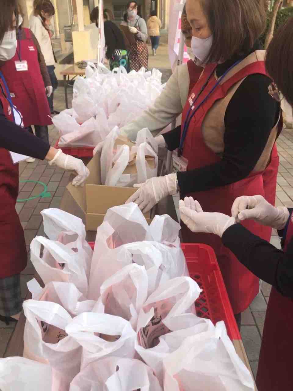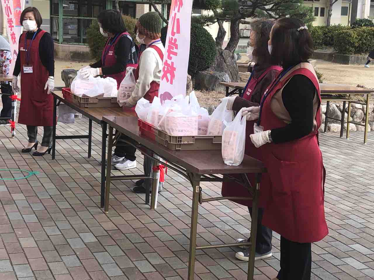 同校PTA、女性会など地域役員、区社協事務局がご協力くださいました。コロナはもちろん、アレルギー対策も万全です。