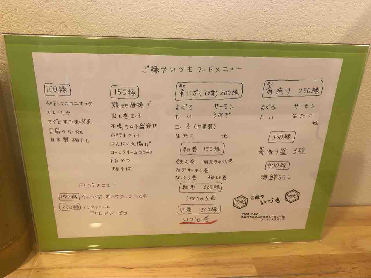 立呑み「ご縁や いづも」。JR・大阪メトロ大正駅から徒歩20秒、シティバス乗り場沿い、ラパンの隣です。コロナ対策でお酒は飲めません。お昼の海鮮丼定食(400円)をいただきました。