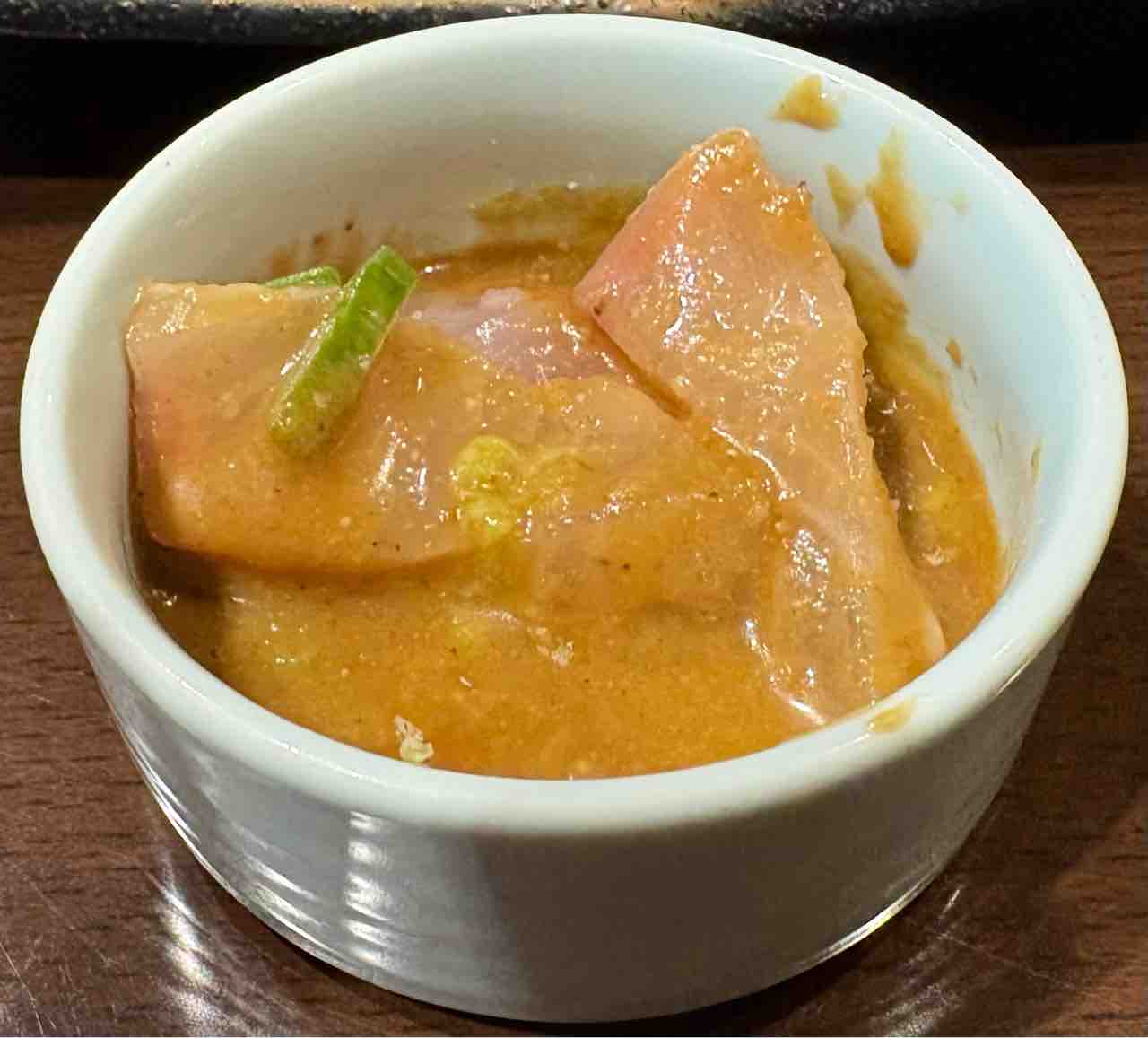 「ごま鯖」と言えば博多名物ですが、一緒に入った居酒屋では、「ごまカンパチ」を食べることができました。思い出になる風味と食感でした。